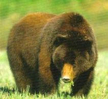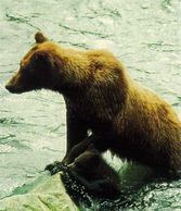 Brown or Grizzly Bear? The island belongs to Ursus arctos. The same bear, found around the Northern hemisphere is called brown bear or grizzly depending on where they live - whether near the sea or inland, in Europe, Asia or North America. This essenteally is the same bear explorers Lewis and Clark encountered in great numbers just west of the Mississippi River. It is the same bear that ranged throughout the West and into Mexico, and which has not been seen in California since the 1920s (except on their state flag). Today it survives outside of Alaska only in isolated pockets in four states of Northwest U.S. and in parts of Canada. Everything about the bear is big - Admiralty's brown bear, as elsewhere, has the species' large head, characteristic shoulder hump and long claws. On either side of the head are large muscles that power the jaws. The bulging shoulder hump is the muscle that gives such enormous strength to the front legs. The digestive system enables feeding on both plants and animals.